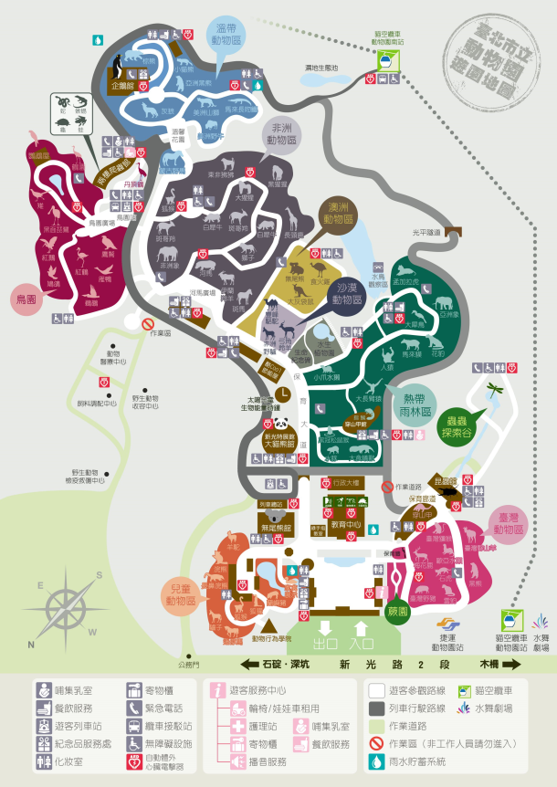 木柵動物園,最早設立於1914年,時為日治時期,日人大江氏在圓山開設一處觀賞花木與動物的所在供眾遊覽,翌年台北廳為紀念日皇大正即位,收買改為官營動物園,後歷經戰亂,頻遭空襲,動物園因恐猛獸在欄舍毀損後逸出傷人,遂將其處死。1945年後,國民政府來台重新建設,1986年,從圓山動物園搬到現在的新址-木柵動物園,新園區面積有163公頃,位於台北市郊,現已開放展示的室內展示館有教育中心、夜行動物館、企鵝館、無尾熊館和新光熊貓館、兩棲爬行動物館以及穿山甲館,戶外展示區有台灣鄉土動物區、可愛動物區、亞洲熱帶雨林區、沙漠動物區、澳洲動物區、非洲動物區、溫帶動物區及鳥園區。近年來生態保育與環境教育日漸重視,園區除了注重動物的生存權,也積極辦理各項保護關懷動物的活動,邀請民眾共同參與,現在不僅是國內重要的學校校外教學場所,也是北台灣通過環境教育認證的環境教育場域。