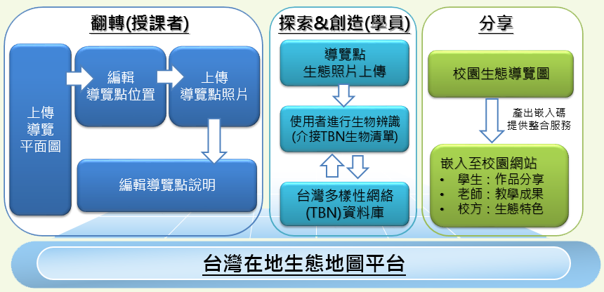 以實體或虛擬地圖為基礎,應用其空間、定位、路線導引等功能,結合學習內容呈現、問題回答、文字相片記錄、闖關等學習模式,建立多元的學習型態,提供師生教學應用,增進學習成效。
